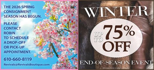 END of WINTER SEASON UP TO 75% OFF SPRING CONSIGNMENT IS ON NEW ITEMS ARRIVING DAILY